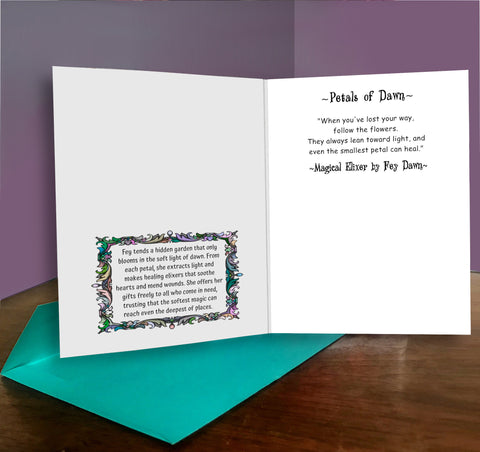 Created from the imagination of Primal Painter, these fantasy fairy art cards are more than just greeting cards; they're story cards featuring the wisdom and lore from the Enchanted Chronicles of the Fae Realm. Beautiful and ethereal, the Guardians of the Fae Realm reveal their wisdom through a connection to nature.