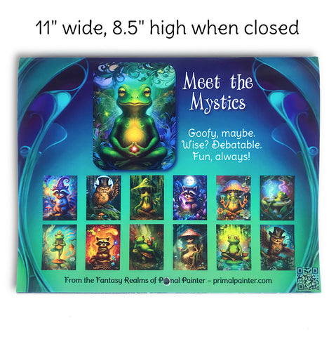 Thirteen months of Funky Forest misfits and one unapologetically weird wall calendar by Primal Painter to keep your days organized and entertained. Meet Sir Sipsalot, frog guru extraordinaire. Encounter the Sporeacle mushroom tribe, including the dangerously seductive Toxina Sporceress. Follow the magical raccoon bandits through chaos and questionable decisions. End the year with Druid Von Hootenstein, a snarky old owl and curmudgeonly master of the insult. Every character comes with their own quotes, quirks, and chaotic charm.