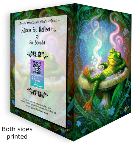 Sir Sipsalot is a multi-talented frog guru and official scribe of the Ancient Scrolls of the Funky Forest. He knows how to relax in his topless mushroom spa filled with nectar fizz and his wisdom juice nearby. He reminds us that self-care is important and recharges the batteries. His quote and advice are on the inside: