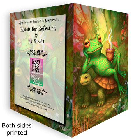 Meet Sir Sipsalot, a multi-talented frog guru and official scribe of the Ancient Scrolls of the Funky Forest. Lounging on a turtle with a cup of his always-present "wisdom juice" in hand, his sage advice is to slow down and relax because patience wins the long game.