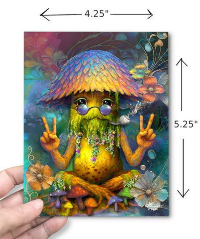 Perfect for birthdays, encouragement, or anytime you want to send a little whimsical chill. Mushroom lovers, Sporeacle collectors, and anyone with a taste for forest fun with hippie vibes of peace and love…this card's for you.