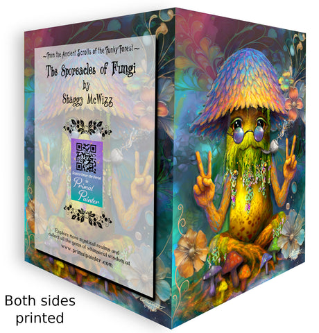 Colorful and groovy greeting cards that are both fun and philosophical...yes, please! Shaggy McWizz is the coolest mushroom in the notorious Sporeacles tribe from the Funky Forest realm. He's a rainbow-capped, flower-bearded shaggy mane mushroom and is here to spread peace and spores. With his puffball pipe, groovy round spectacles, and double Peace signs, he reminds us to inhale the beauty, exhale the judgment, and just vibe with life.
