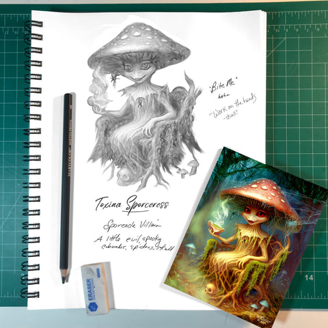 **Inside features Toxina's backstory and her toxic warning: "Come closer, dahling. The red caps won't bite…unless you do. A little poison adds flavor, but too much adds bones to my throne. Choose wisely.” Toxicity Alert by Toxina Sporceress