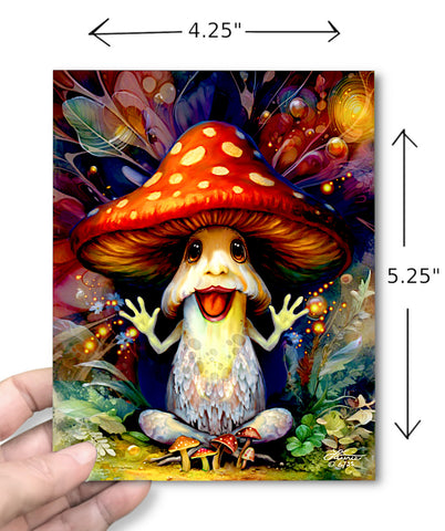 Goofy Mushroom Greeting Card: Collectible Animal Character Art by Primal Painter