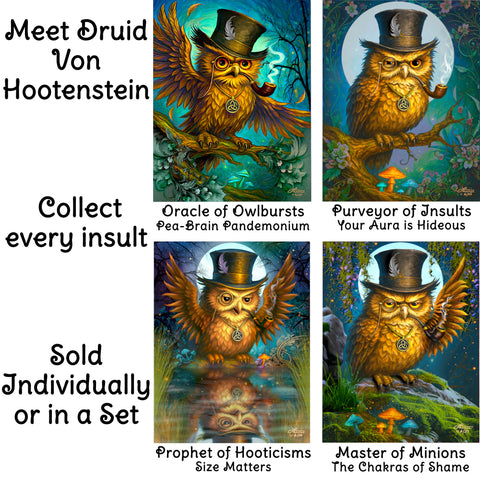 ✨ Druid Von Hootenstein is sold individually or in a pack of four for a discounted price. You can also collect the set of four different owl insults on this listing.