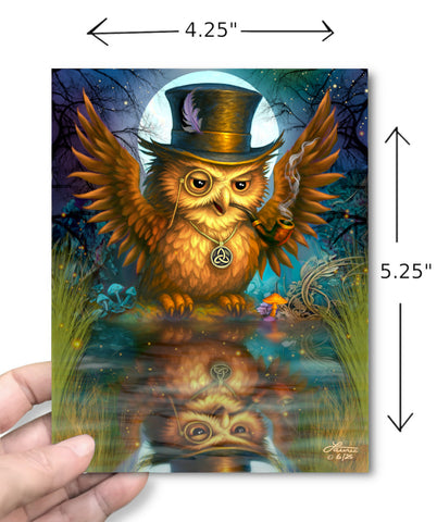 Pond Reflection Owl Art Greeting Card, Affirmation Critique Notecard by Primal Painter